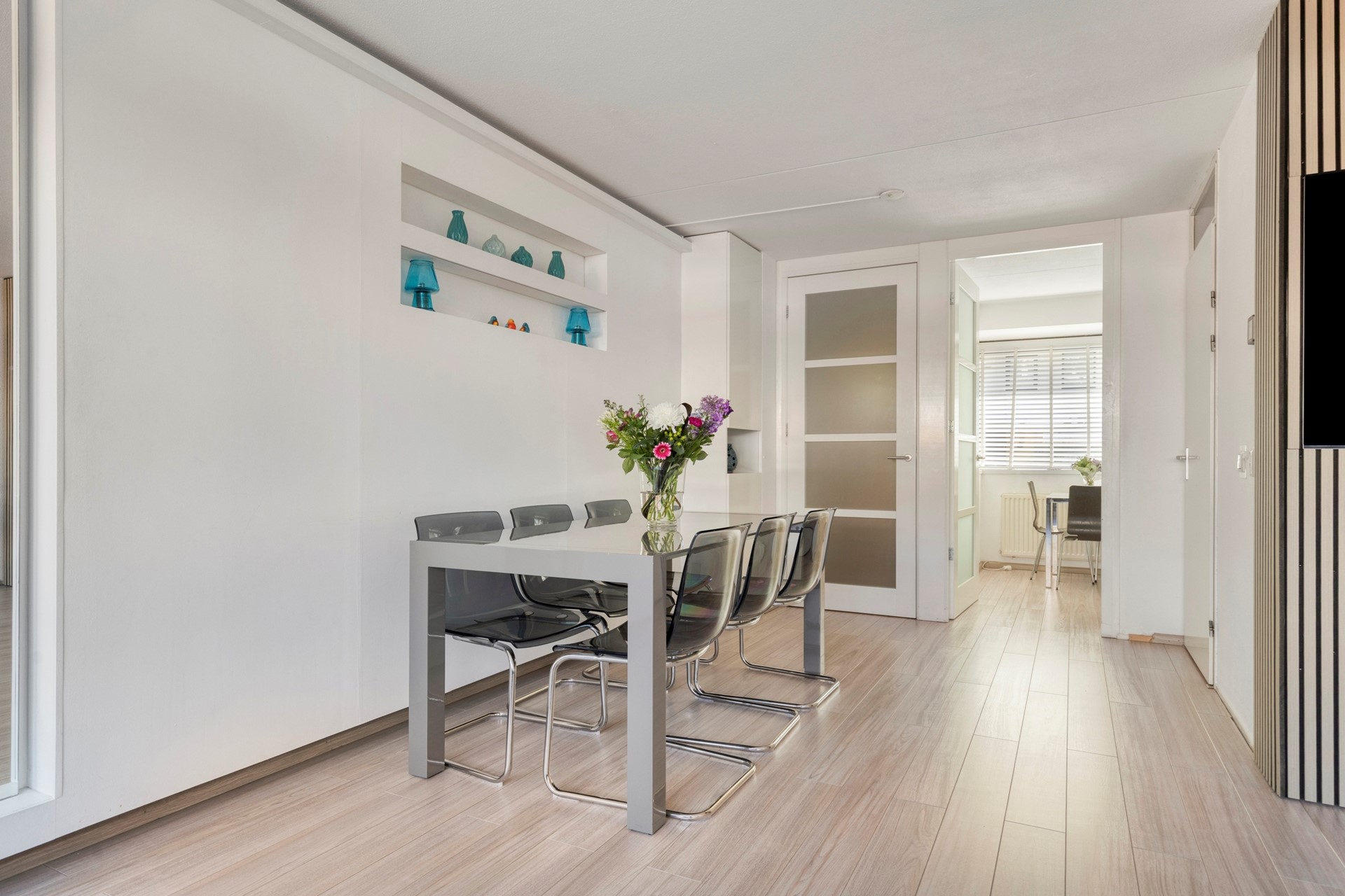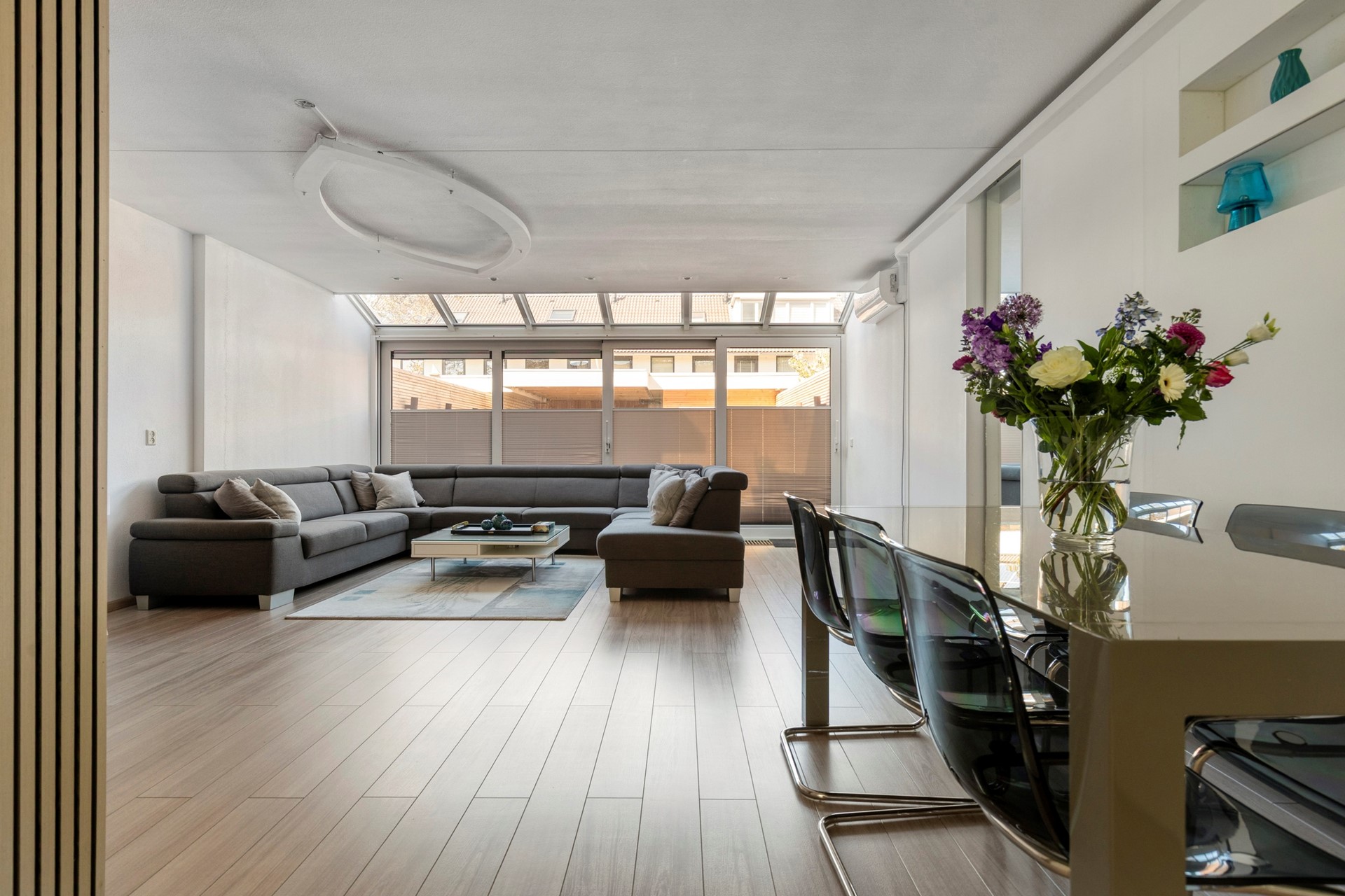 Via de hal met meterkast bereik je de ruime uitgebouwde woonkamer met veel lichtinval... Meer informatie