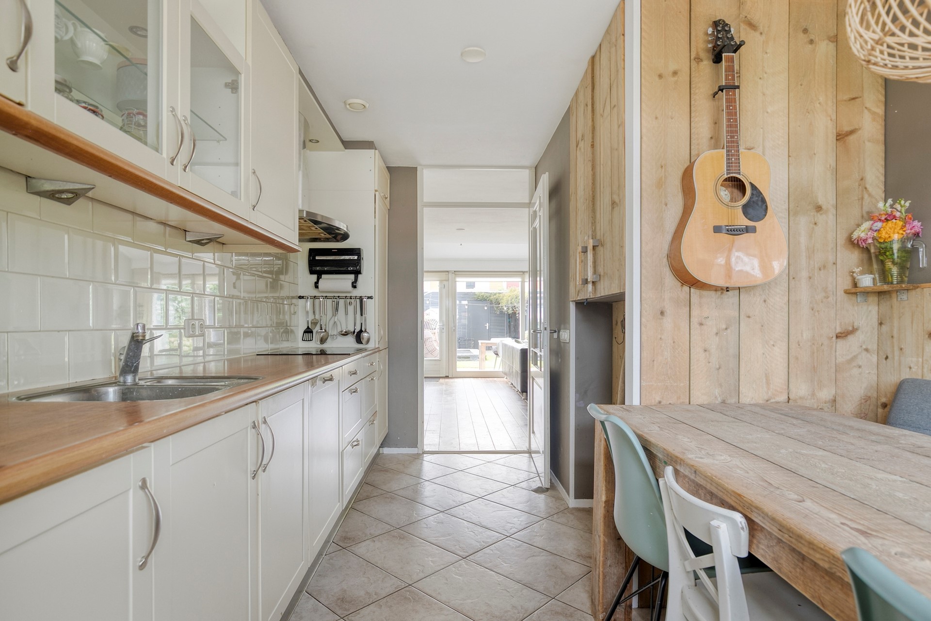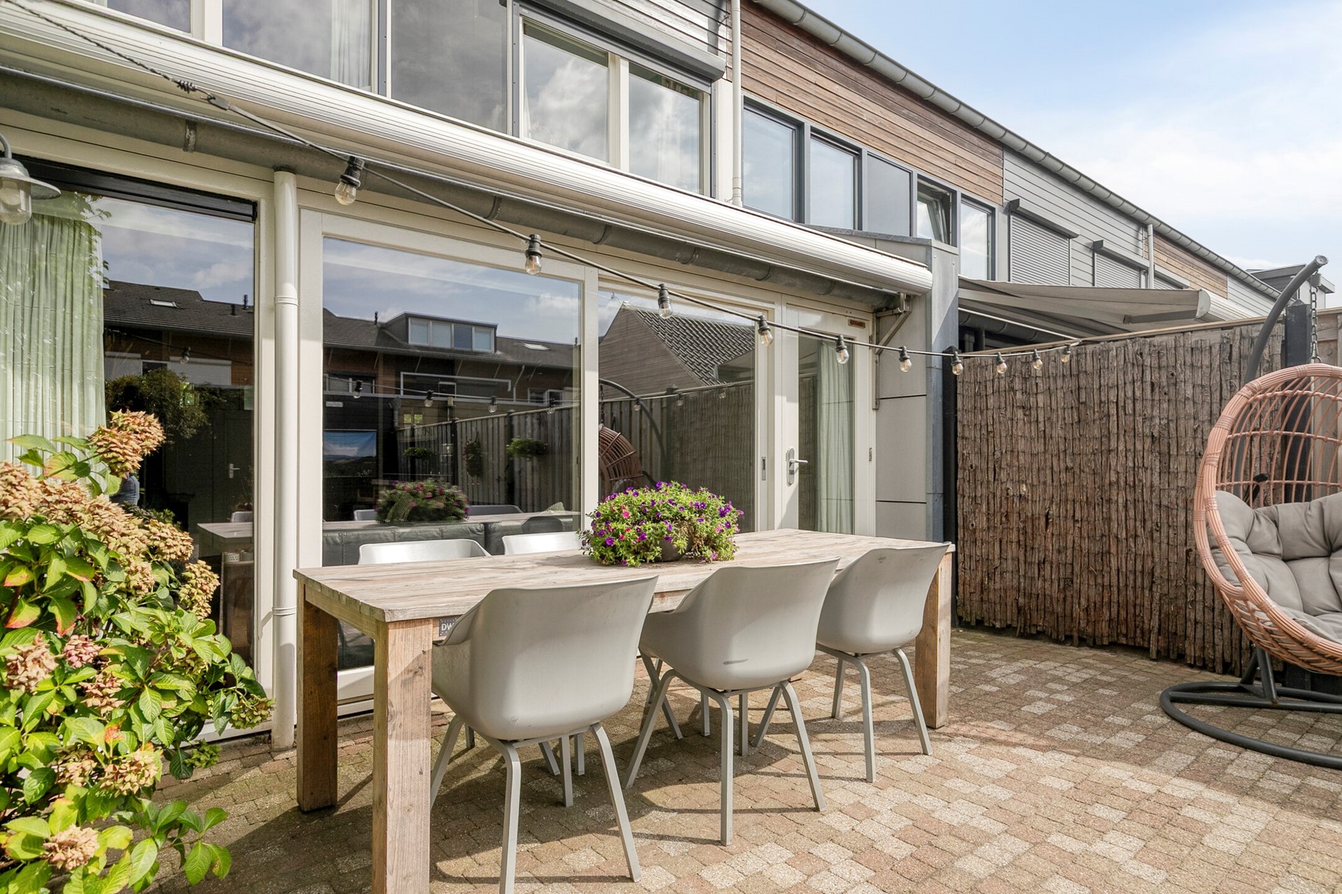Schuifpui naar de tuin, waardoor de overgang tussen binnen en buiten prachtig is.