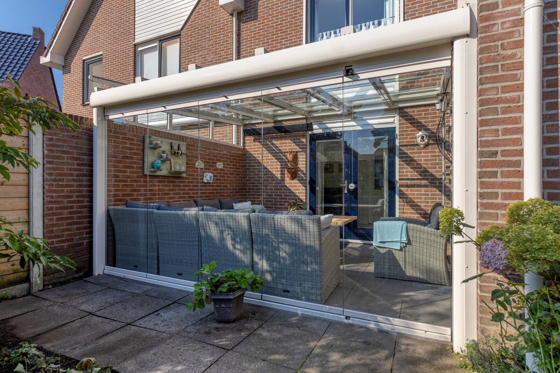 Kom binnen in een huis dat meteen voelt als thuis. In de ruime woonkamer met vloerverwarming blijft het ’s winters behaaglijk warm; in de zomer zet je de dubbele tuindeuren open naar het grote overkapte terras (serre). Wordt het je iets te heet, dan zorgt de geïntegreerde zonwering van de aluminium overkapping voor verkoeling.