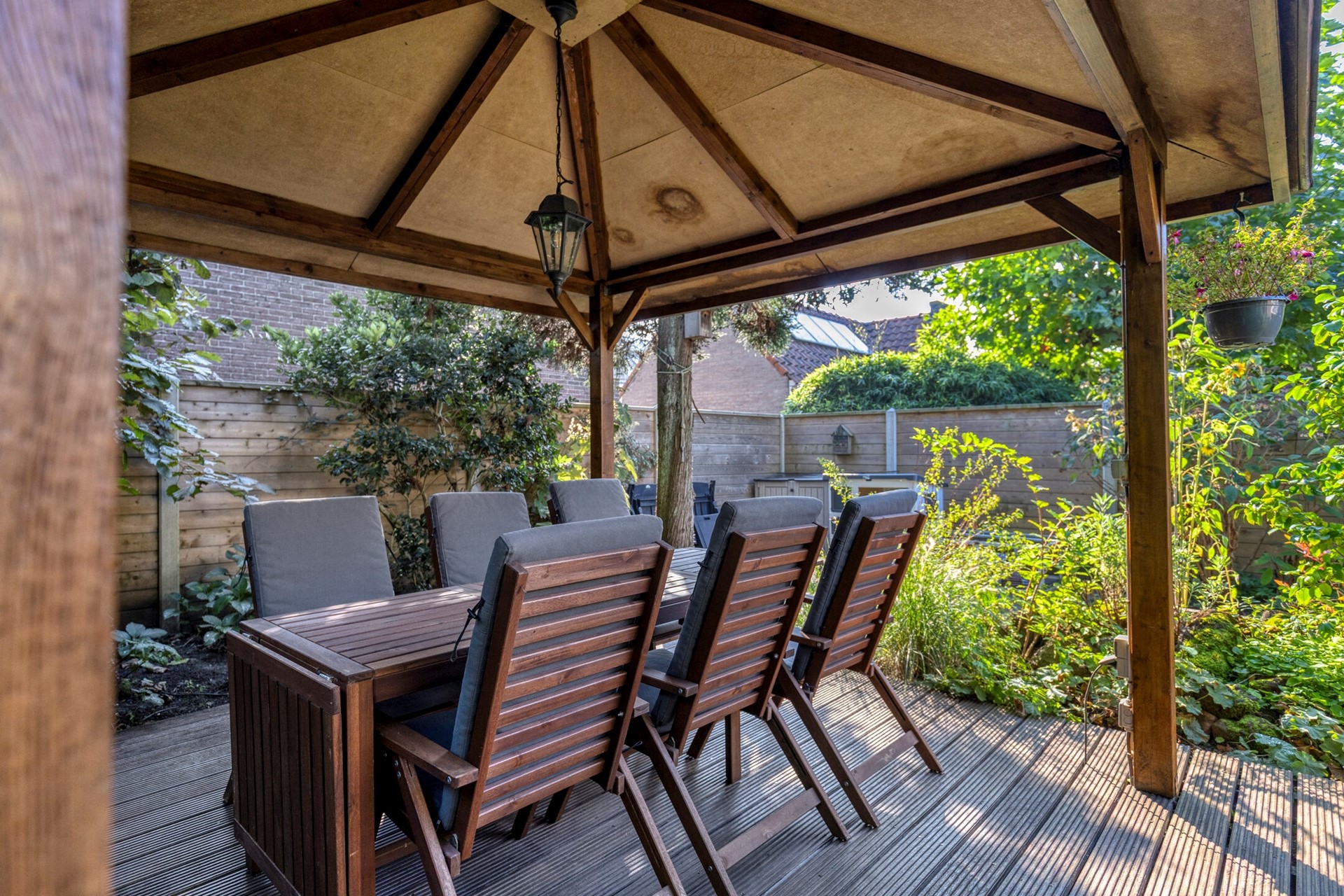 De achtertuin is ronduit spectaculair te noemen. Zo’n 270 m² eigen groene oase op het zonnige zuidoosten, royaal omsloten door volwassen bomen en struiken. Wil je de dag beginnen met een ontbijtje buiten, een zomerse barbecue tot in de avondzon, of juist wat verkoeling opzoeken? Het kan allemaal dankzij de combinatie van overdekt terras en het gezellige prieel, helemaal achterin de tuin.