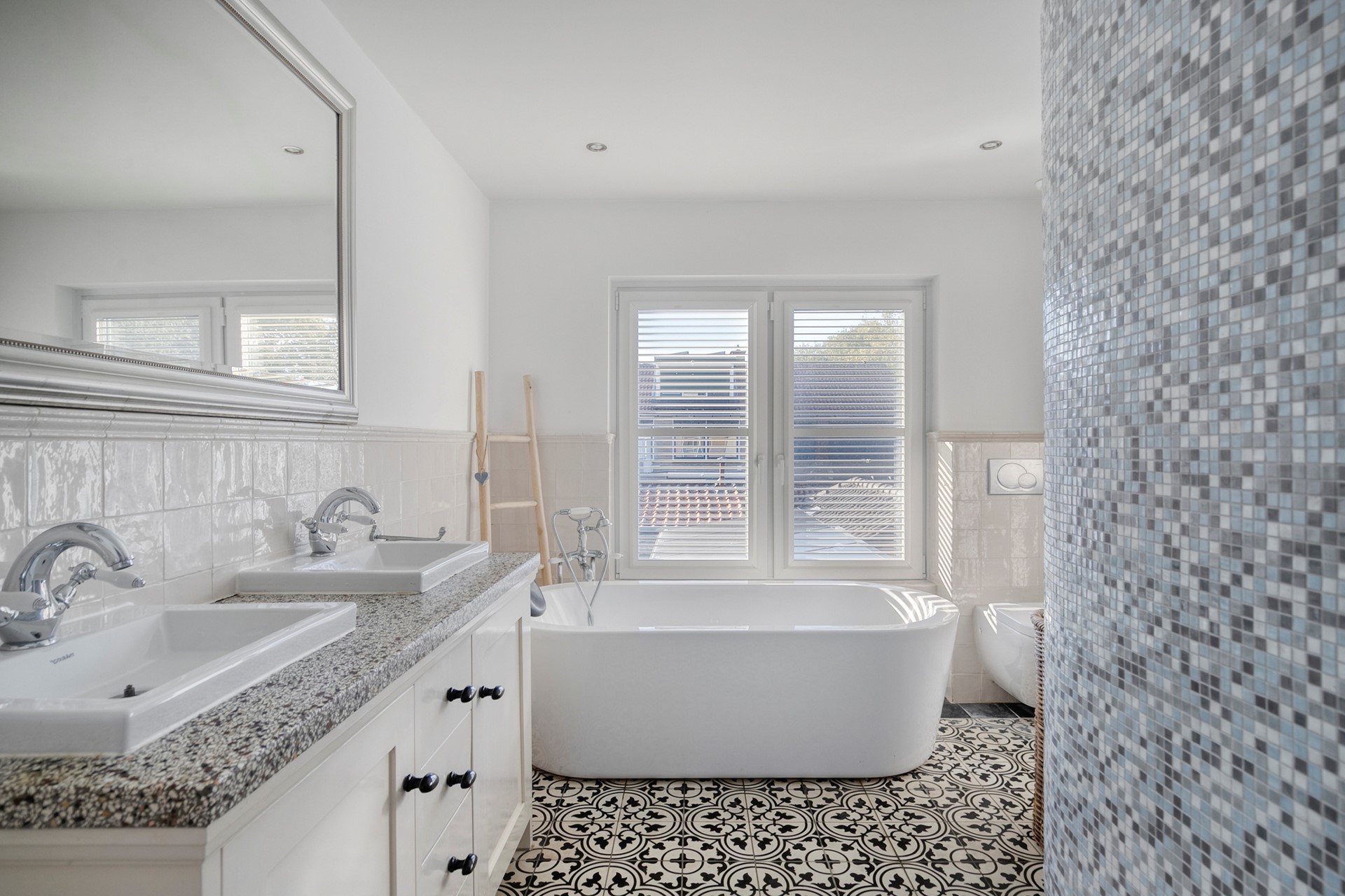 Badkamervoorzieningen | Dubbele wastafel, Inloopdouche, Ligbad, Toilet, Vloerverwarming, Wastafelmeubel |