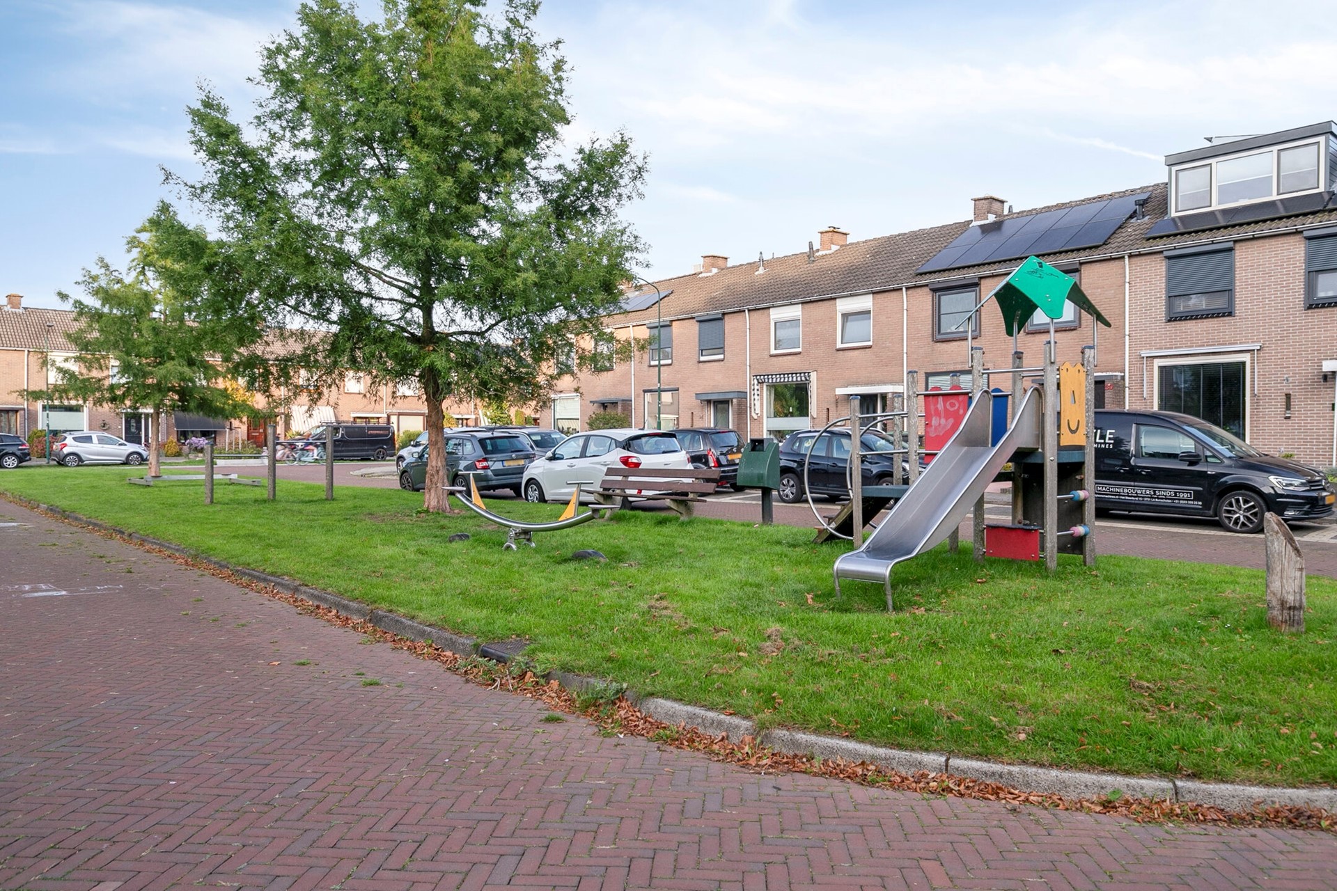 De fraai aangelegde achtertuin ligt gunstig op het westen, wat betekent dat je hier vanaf de middag tot in de avond volop kunt genieten van de zon. De tuin is grotendeels onderhoudsvriendelijk aangelegd met nette bestrating en biedt voldoende ruimte voor meerdere zitplekken.