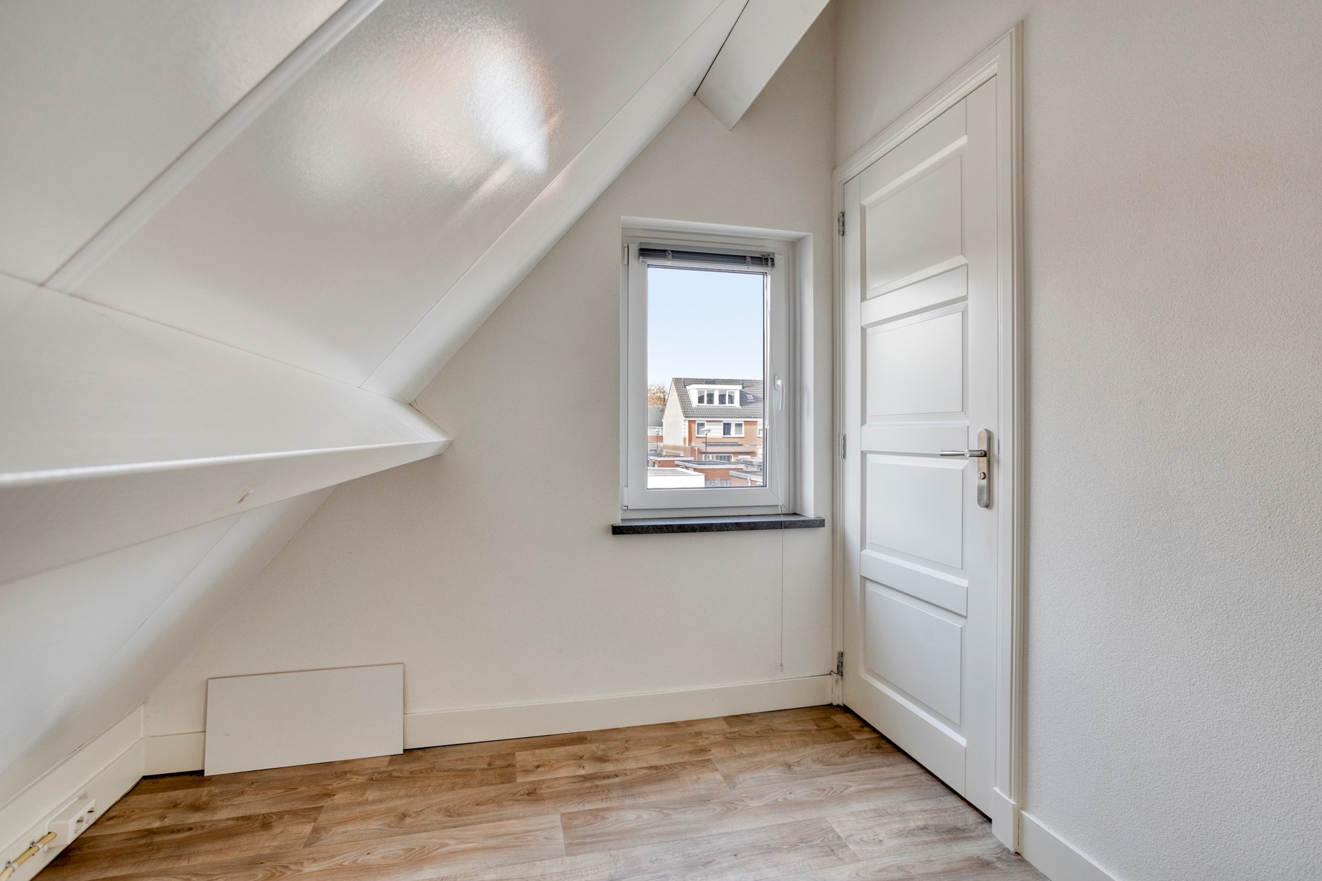 Voorzolder met hr cv ketel opstelling (Intergas 2019), MV-box, via deur toegang tot de extra sanitaire ruimte v.v. hangend toilet en wastafel met dubbel lades, toegang tot de geïsoleerde bergzolder met groot dakraam (mogelijkheid 2e slaapkamer). Op deze verdieping ligt een linoleum vloer.