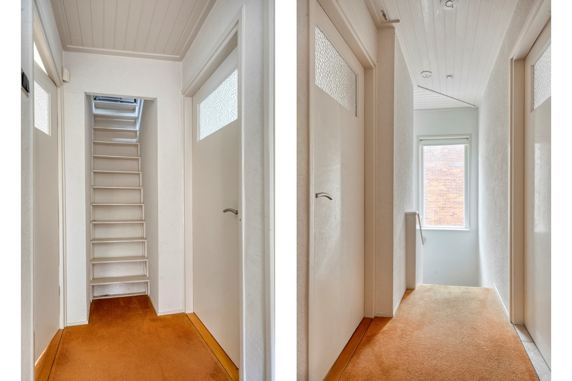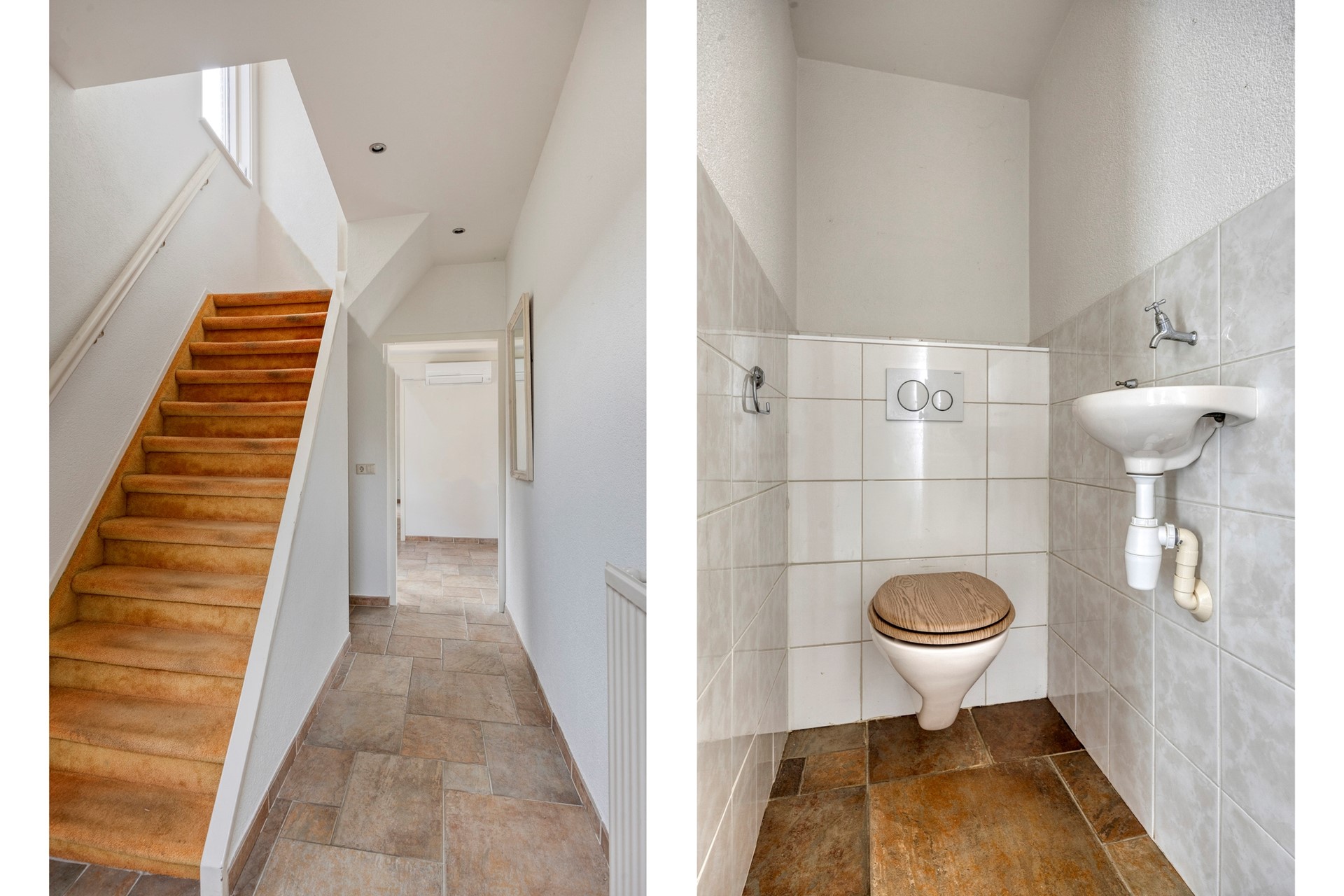 Op de verdieping bevinden zich drie goed bemeten slaapkamers en een badkamer. De zolderverdieping biedt extra bergruimte en mogelijkheid voor een vierde slaapkamer of werkkamer.