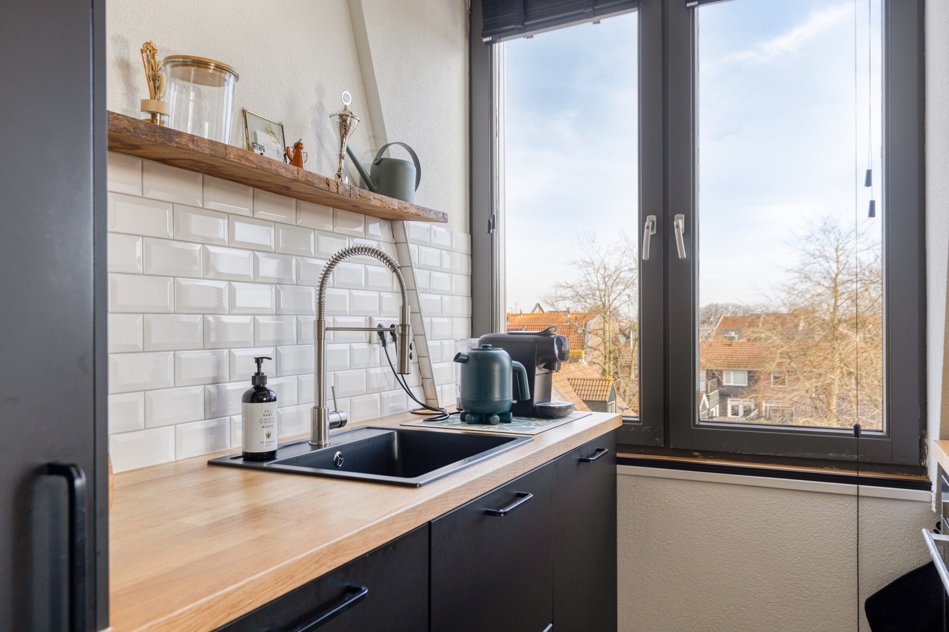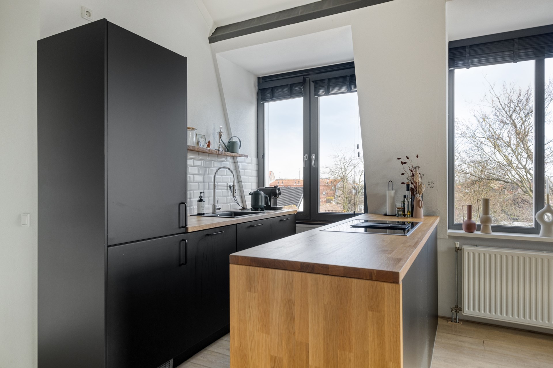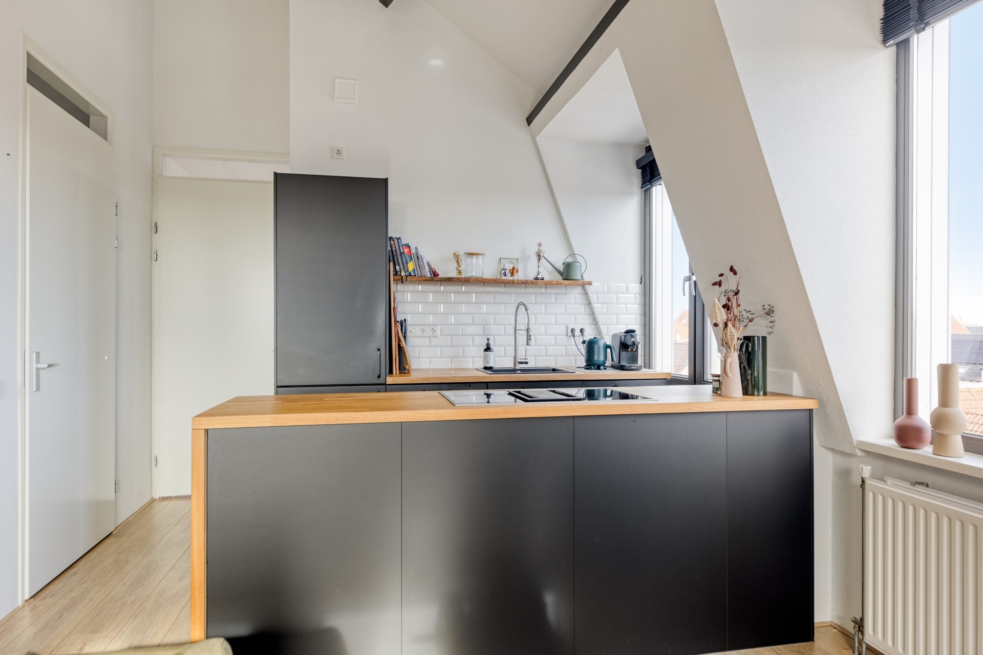 Dit keurige 3-kamer(hoek)appartement ligt in het gezellige centrum van Bunschoten-Spakenburg en is uitstekend afgewerkt. Het appartement beschikt over een ruime woonkamer met hoge plafonds en veel lichtinval, wat zorgt voor een prettige, open sfeer. De moderne open keuken (uit 2019) is voorzien van een inductiekookplaat met interne afzuiging, een combi-oven met magnetron, en een koelvriescombi.